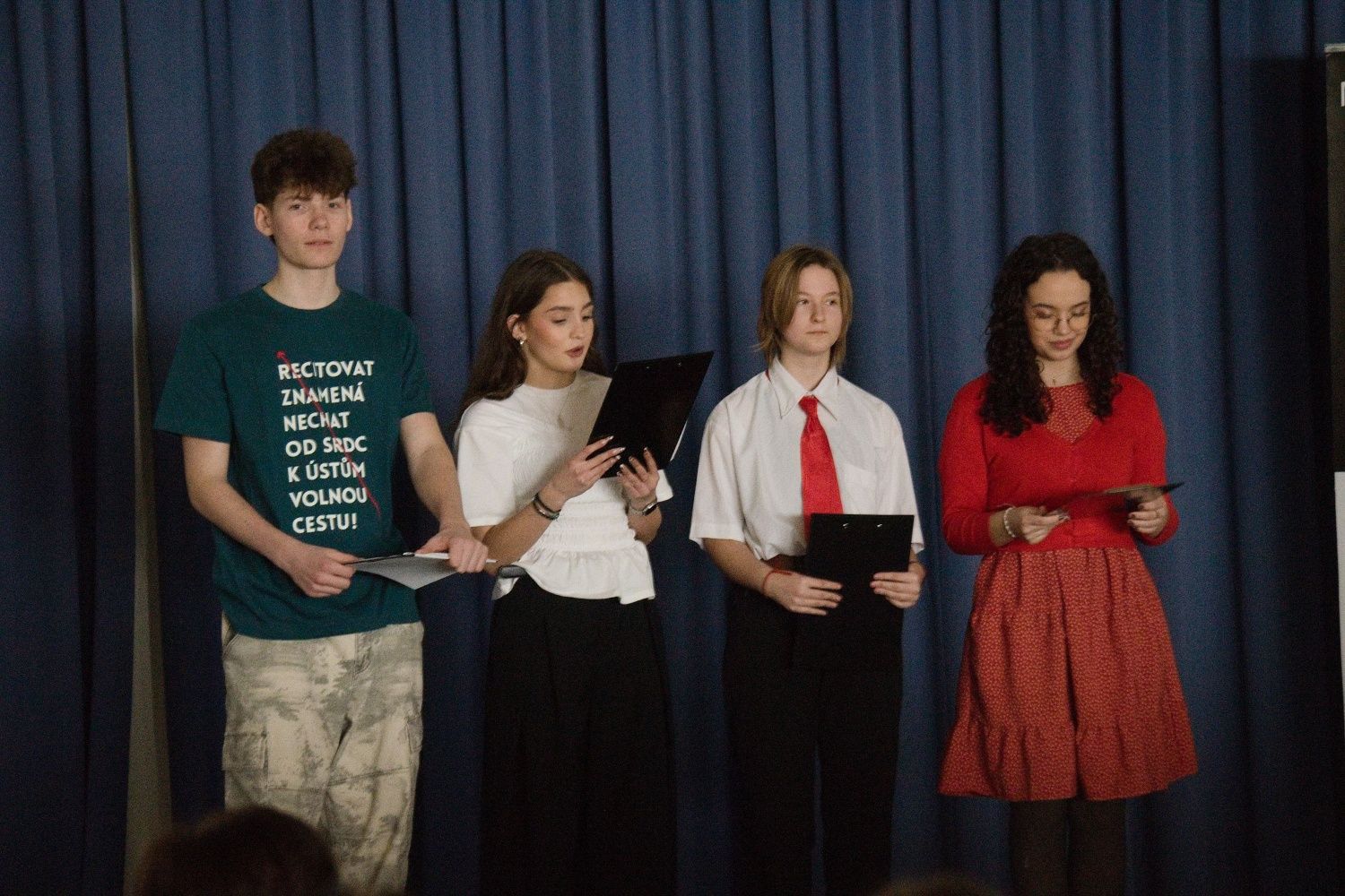 Na celostátní kolo nezapomeňte přinést své texty, a to v pěti kopiích. Myslete na jednu kopii pro pedagoga či doprovod, který by měl být vždy rychlou záchranou a pomocí v případě výpadku přednášejícího.