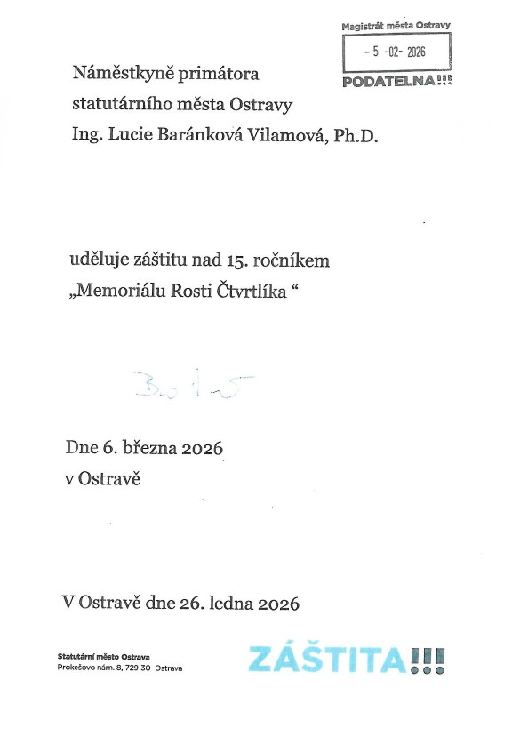 Vážení a milí příznivci Čtvrtlístku. Dovolujeme si Vám zaslat propozice pro další ročník Memoriálu Rosti Čtvrtlíka. Chceme Vám poděkovat za Vaši přízeň, přípravu studentů, účast v minulých ročnících a poskytnout Vám informace do ročníku dalšího.